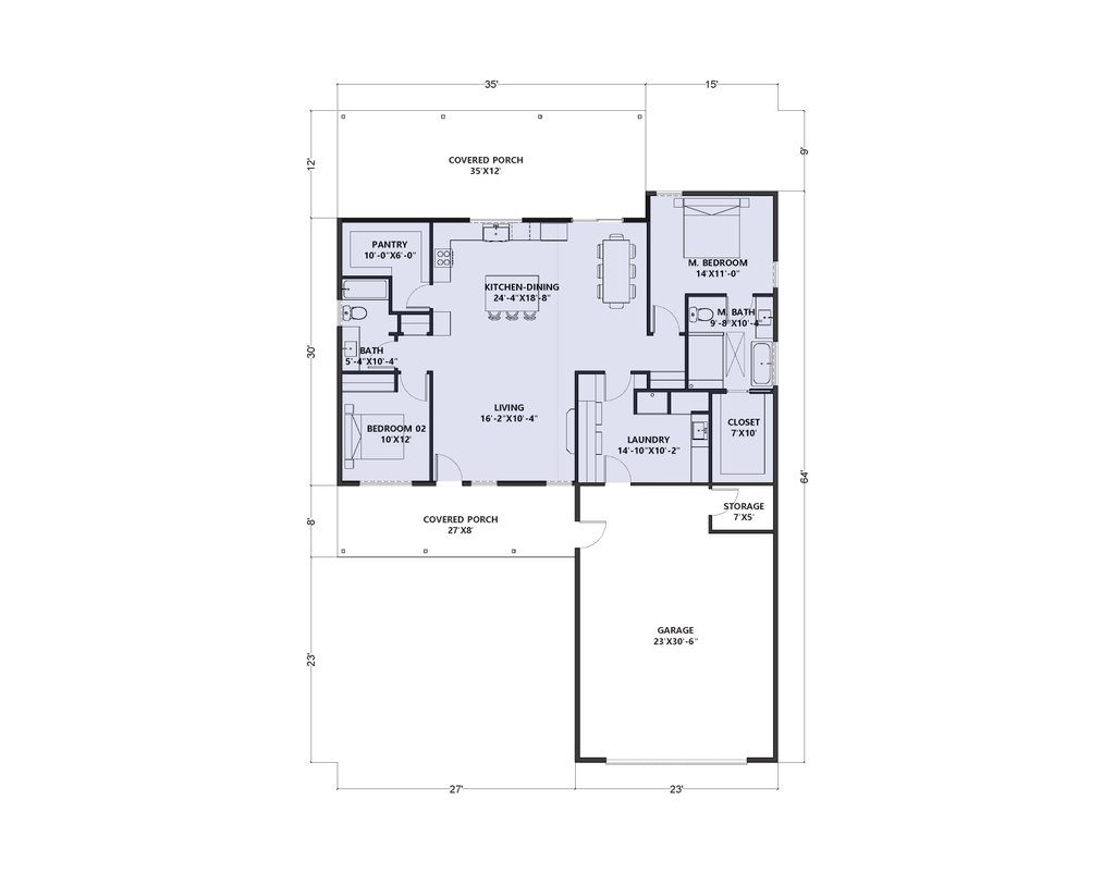 - Foundation Plan: This page shows all necessary notations and dimensions including support columns, walls, and excavated/unexcavated areas.