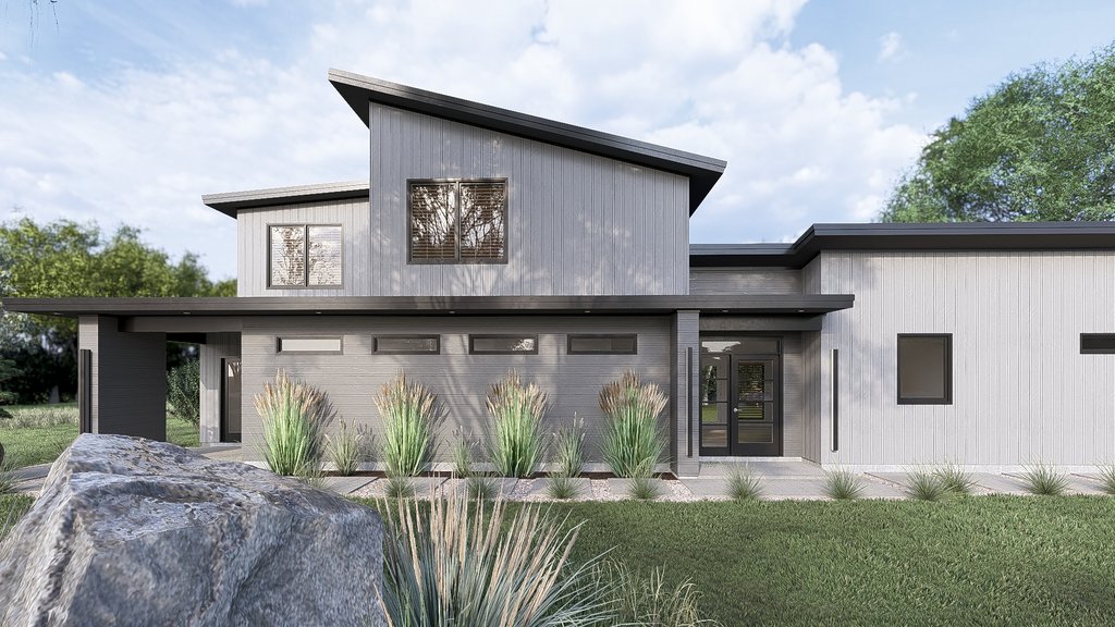 - Exterior Elevations: All plans include the exterior elevations (front, rear, right and left) that show and describe the finished materials of the house.