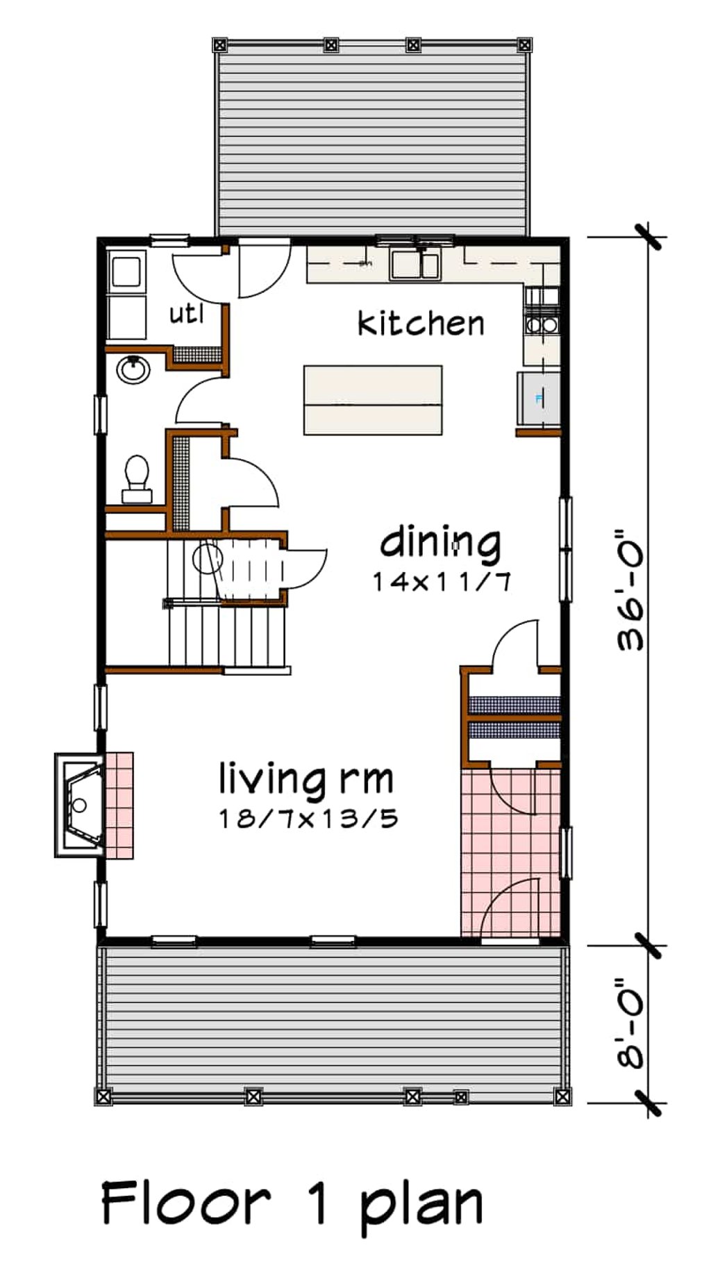 - Floor Plan(s): Roof plan at 1/8"=1'-0". Floor and roof plan(s) and showing all dimensions, joist/rafter directions, cabinets, window and door sizes, etc.