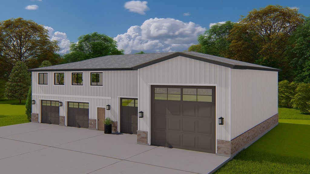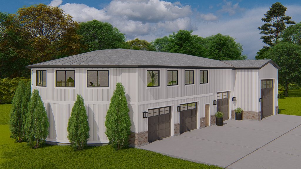 - Exterior Elevations: Views of the home from all four sides showing exterior materials and measurements.