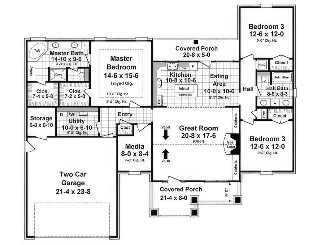 Main Ceiling: 9'