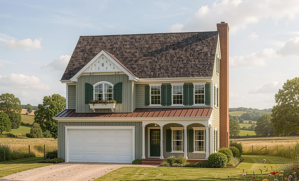 - Exterior Elevations: Views of the home from all four sides showing exterior materials, roof slope, ridge heights, siding and trim notes.