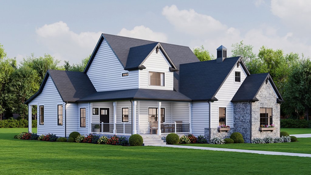 - Exterior Elevations: A blueprint picture of all four sides showing exterior materials and measurements.
