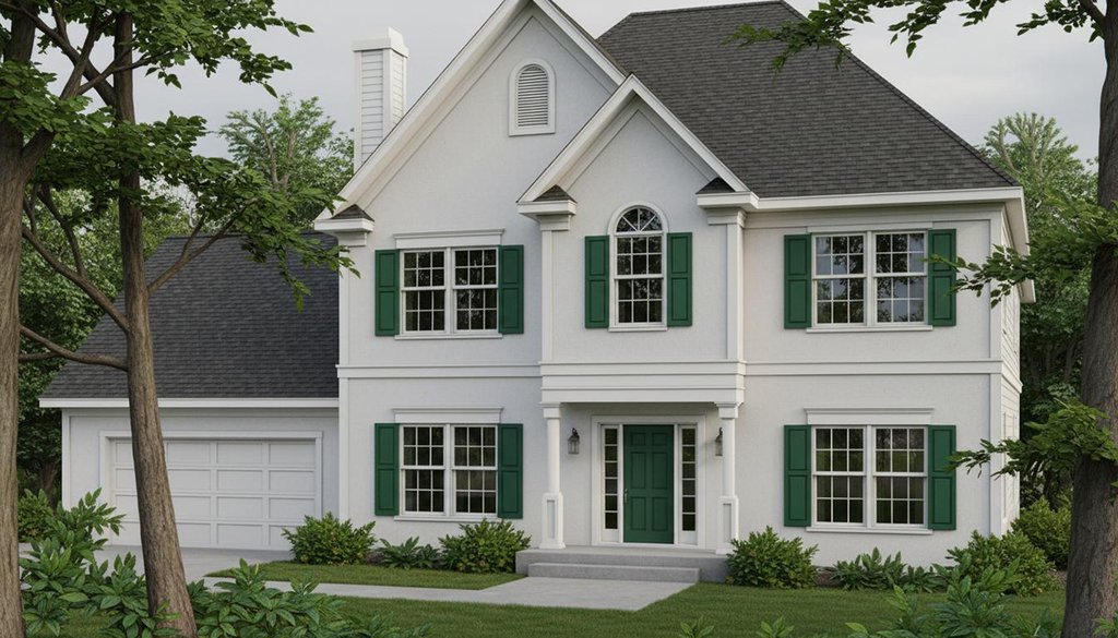 - Exterior Elevations: Elevations drawn at 1/4" = 1'-0" scale, and includes material labels, floor-to-floor heights, roof slope indicators, attic ventilation notes
