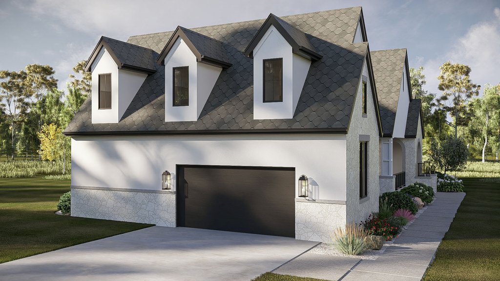 - Overhead Roof Plan(s): A view of the home from above showing roof pitch, peaks, valleys, and other details.