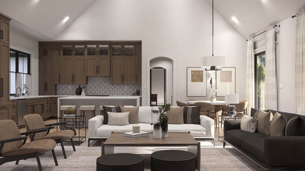 Ceiling Details : The great room, dining room, and kitchen have cathedral ceilings. The master bedroom has a tray ceiling. The in-law suite has a tray ceiling.