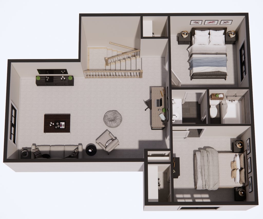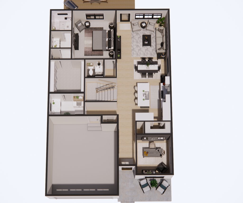 - Overhead Roof Plan(s): A view of the home from above showing roof pitch, peaks, valleys, and other details.