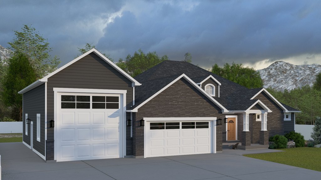 - Overhead Roof Plan(s): A view of the home from above showing roof pitch, peaks, valleys, and other details.