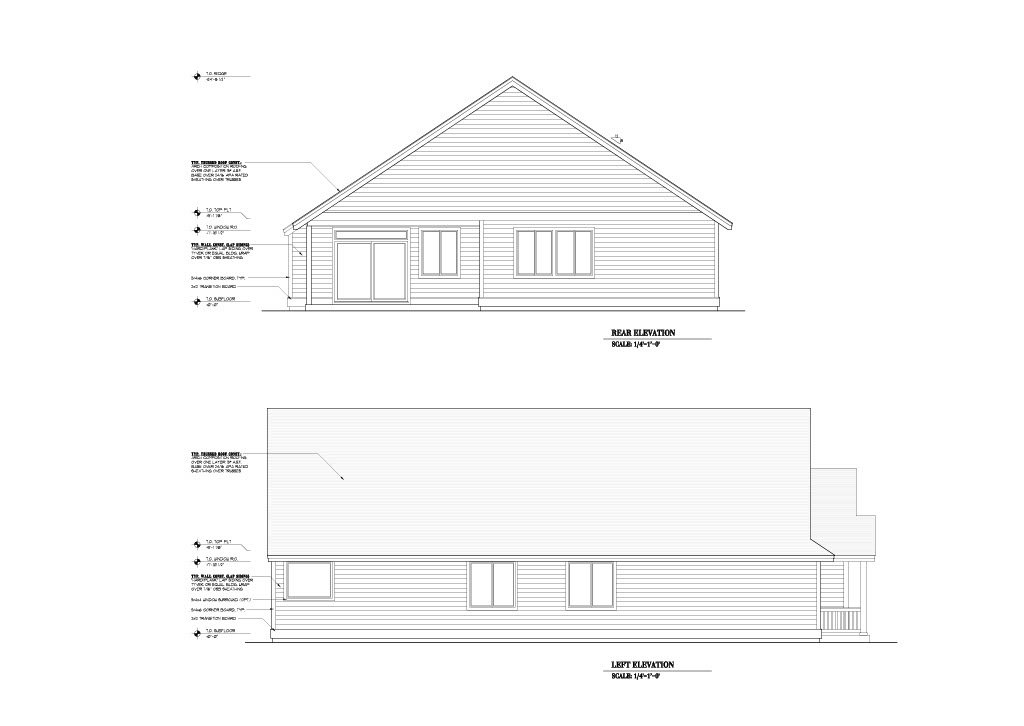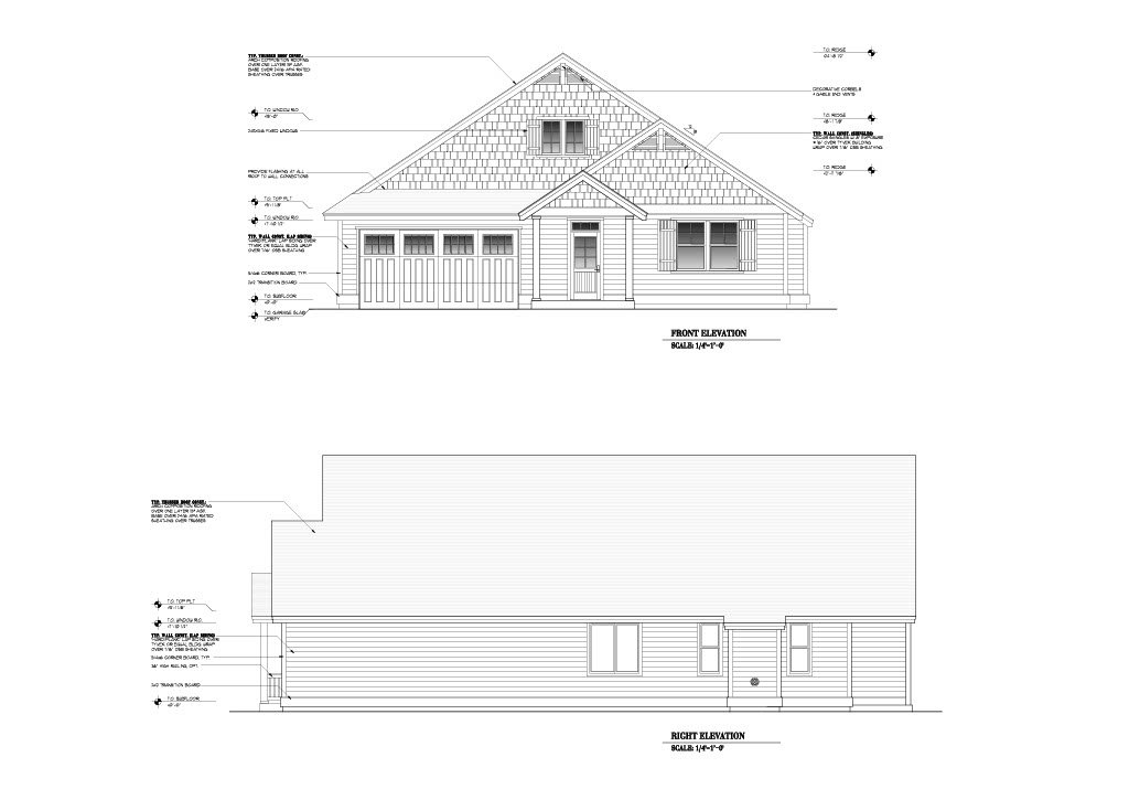- Exterior Elevations: A blueprint picture of all four sides showing exterior materials and measurements.