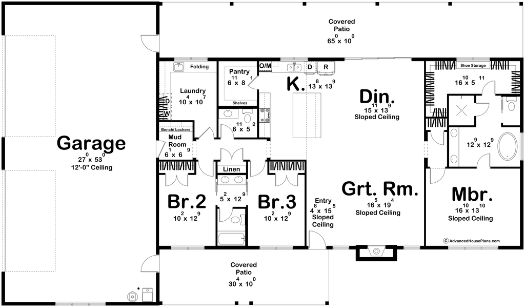 Ceiling Details : There is a sloped ceiling in the dining room, great room, entry, and master bedroom.