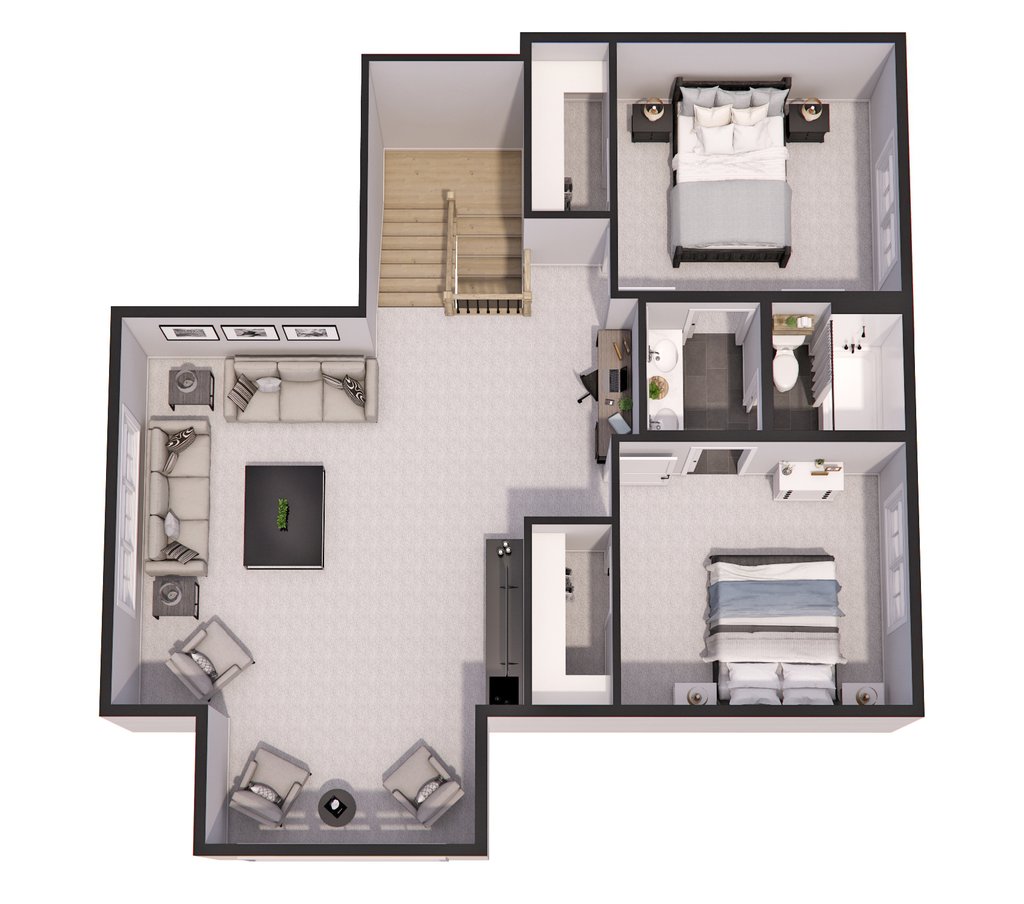 - Overhead Roof Plan(s): A view of the home from above showing roof pitch, peaks, valleys, and other details.