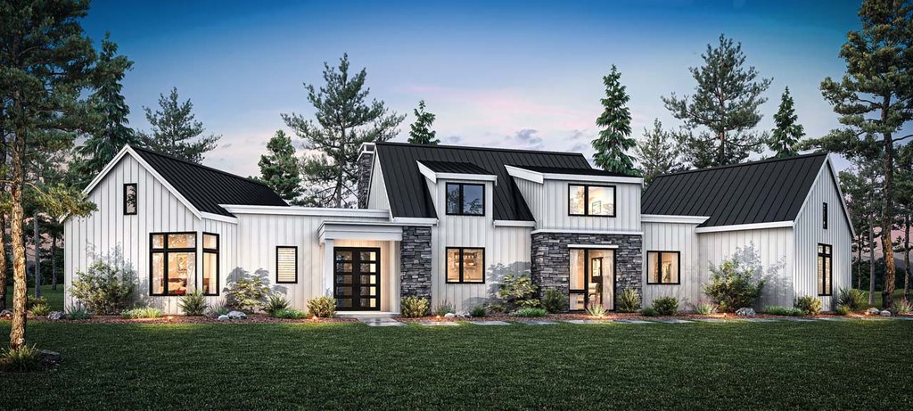 - Exterior Elevations: A blueprint picture of all four sides showing exterior materials and measurements.