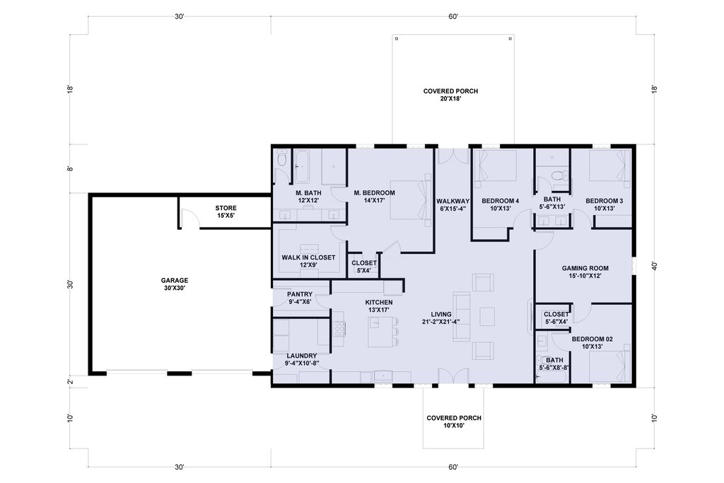 Ceiling Details : Eave height - 12' / Peak height - 20'4"