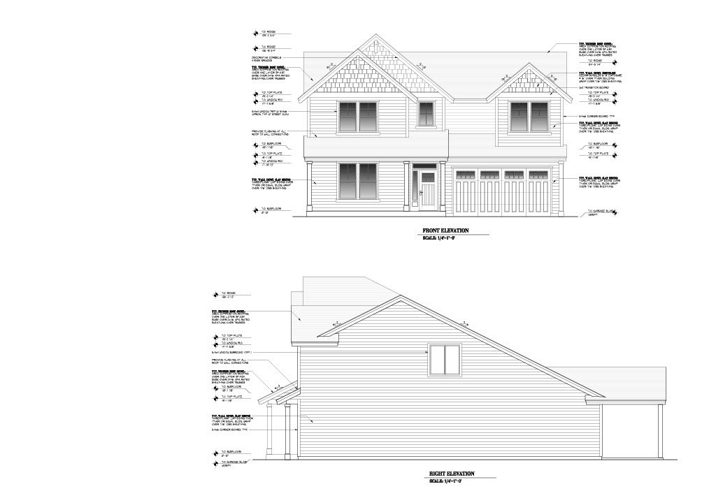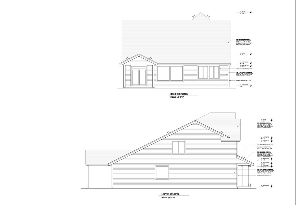 - Exterior Elevations: A blueprint picture of all four sides showing exterior materials and measurements.