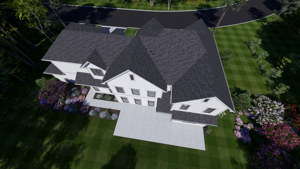 - Overhead Roof Plan(s): A view of the home from above showing roof pitch, peaks, valleys, and other details.