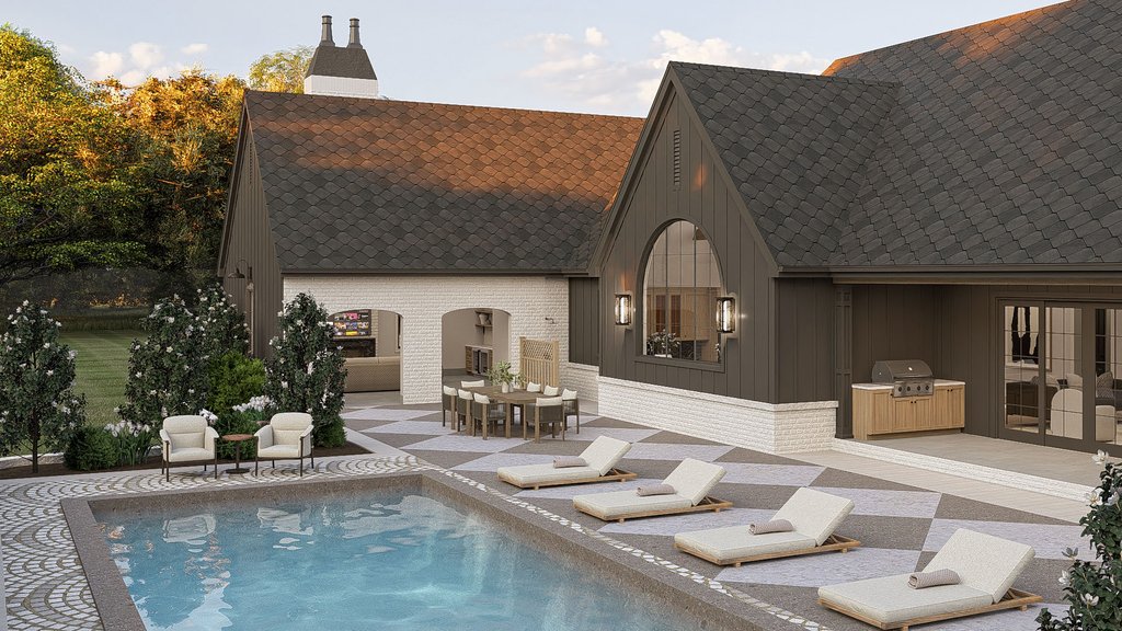 Ceiling Details : There is a cathedral ceiling in the Kitchen and Dining room. The Great room has a tray ceiling. The Master Bedroom has a cathedral ceiling. The pool house has a cathedral ceiling.