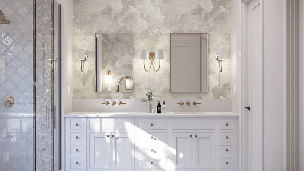 Ceiling Details: The entry and great room greet you with tall, two story ceilings. The master bedroom features a cathedral ceiling. Upstairs, the guest suite and bedroom three also feature cathedral ceilings. Bedroom two and the family room include tray ceilings.