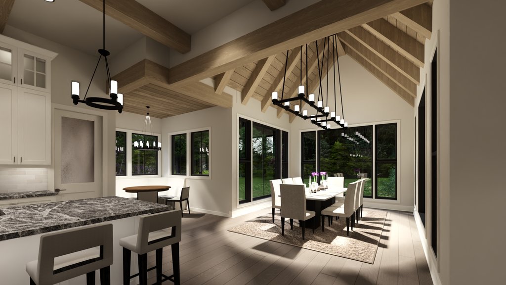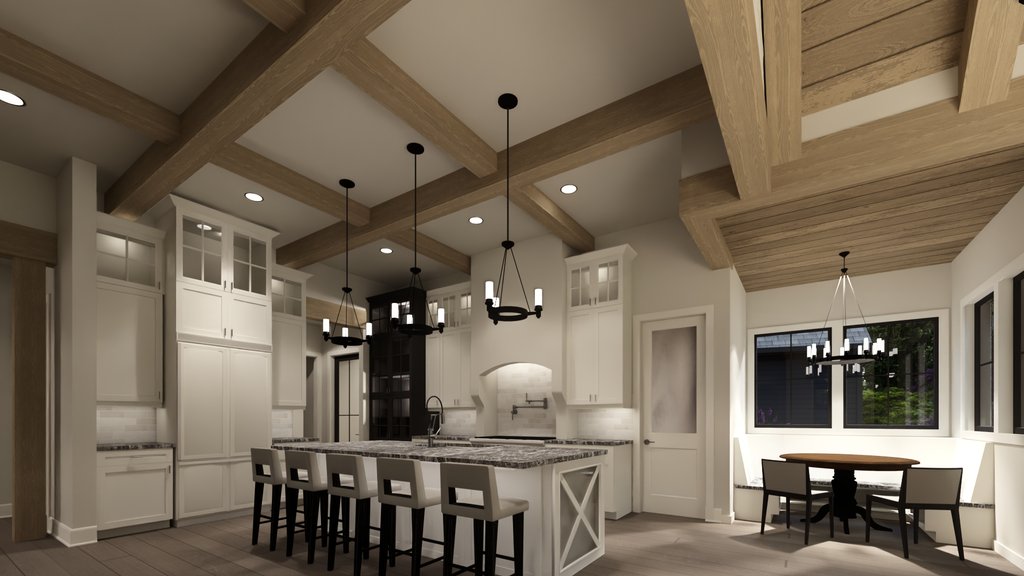 Ceiling Details : Raised entry, vaulted dining, beamed dining, living, kitchen