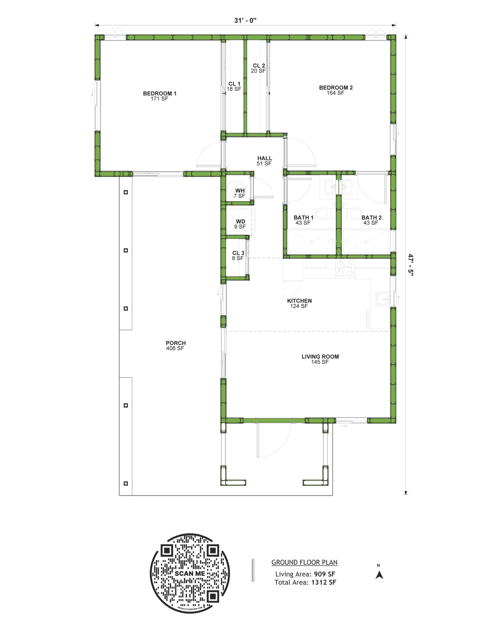 All plans are drawn at ¼” scale or larger and include :