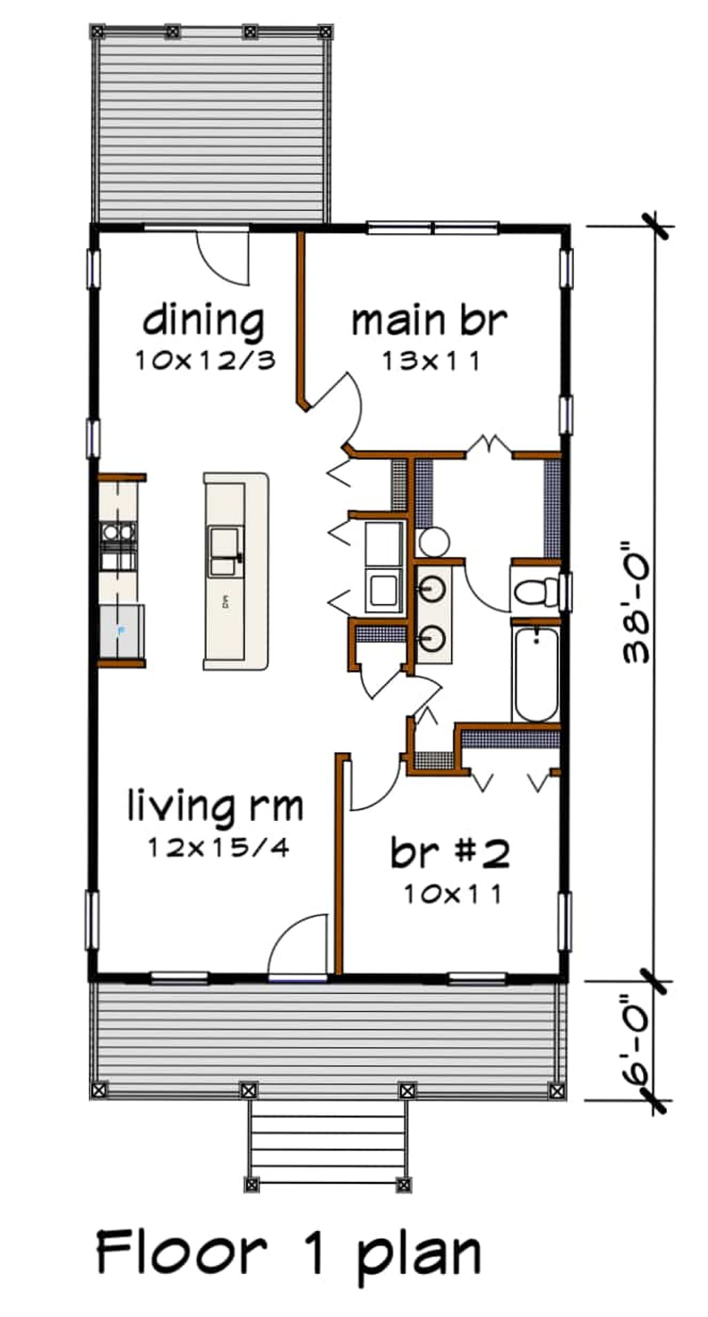 This cottage design floor plan is 912 sq ft and has 2 bedrooms and 1 bathrooms.
